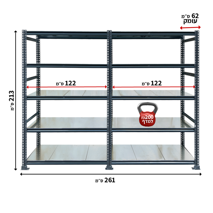 - עומס של 200 ק"ג למדף!